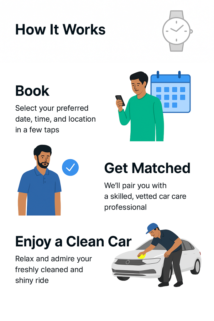 Keep your ride spotless without the hassle. Book a vetted car-wash pro in seconds or visit one of our partner bays across Nagpur.